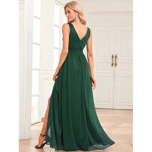 Sexy backless long prom bridesmaid party dresses for women 2025 elegant chiffon evening dress sequin maxi summer dress vestidos