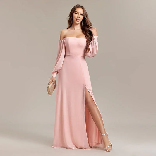 Red Pink Green Long Women's Prom Dress For Wedding Guest Woman Sexy Off Shoulder Formal Occasion Dresses Simple Fashion Clothing